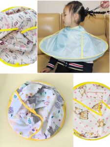 – Áo choàng cắt tóc giúp hứng tóc khi cắt không bị bám dính lên người và quần áo bé, bé sẽ không bị ngứa, hợp tác hơn với việc cắt tóc. Ba mẹ có thể tự mua tông đơ và choàng này cắt cho bé nhé.