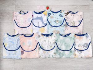 – Dây buộc cổ phía sau hoặc miếng dán tiện dụng giúp yếm không bị rơi khi bé cử động.