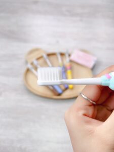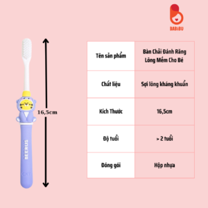 – Trẻ nhỏ răng mới hình thành còn rất non yếu, các mẹ nên chọn sản phẩm bàn chải đánh răng sợi lông siêu mềm để không làm ảnh hưởng tới răng nướu của bé