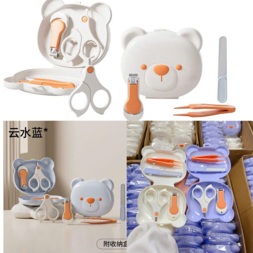 – Bộ bấm móng 4 chi tiết kèm hộp hình gấu có 3 màu sắc xinh yêu để bố mẹ lựa chọn, tất cả đều dễ thương và phù hợp với bé.