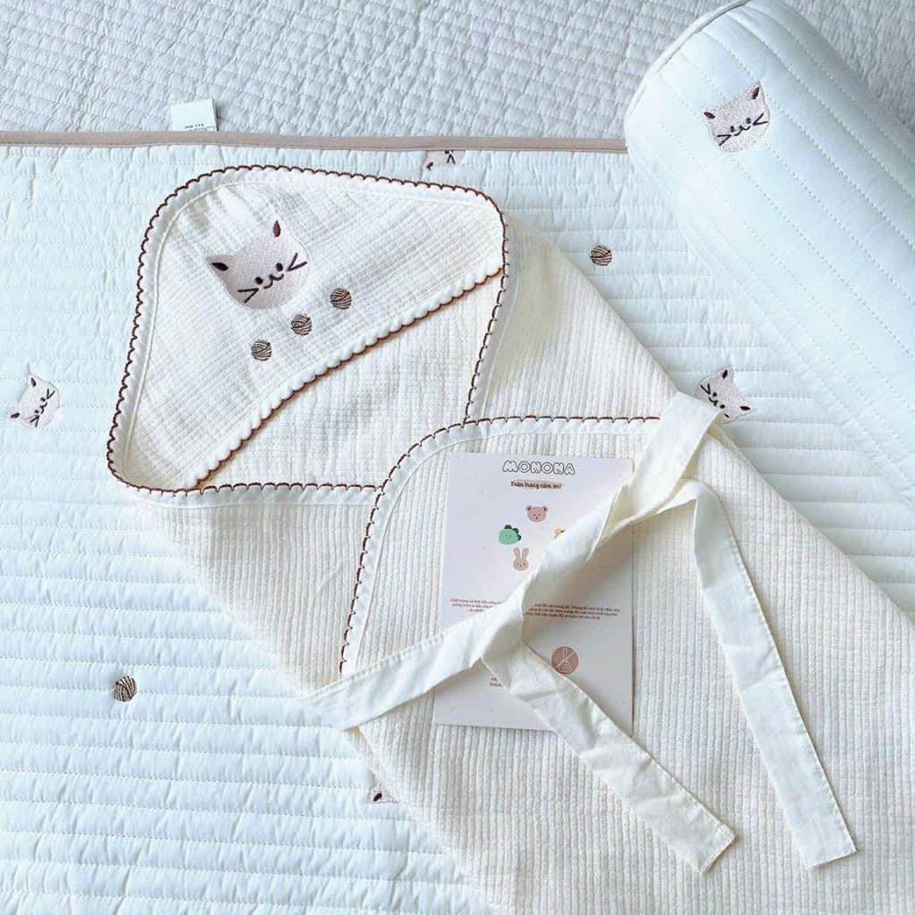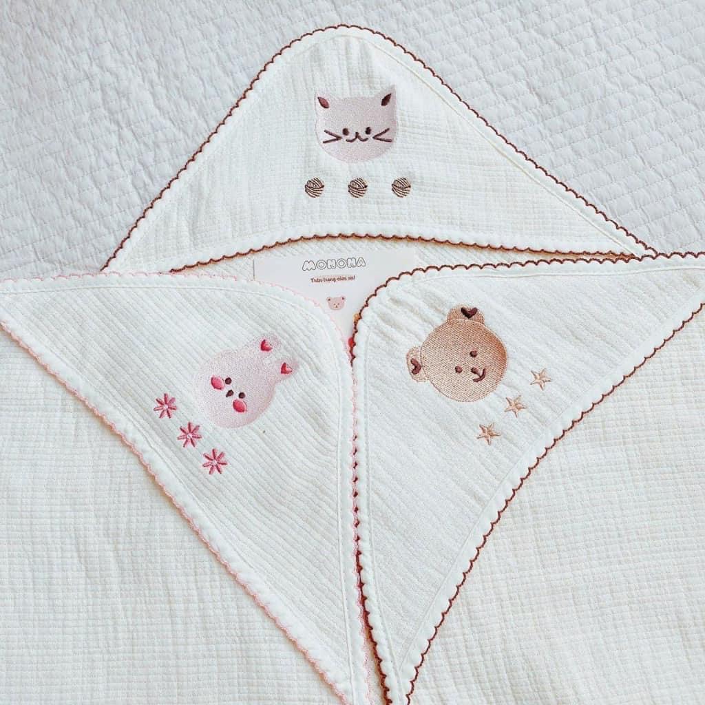 – Thiết kế chăn có mũ mẹ có thể dùng làm chăn ủ cho bé khi đi ra đường trong mùa hè, hoặc làm khăn ủ cho bé khi vừa tắm xong.