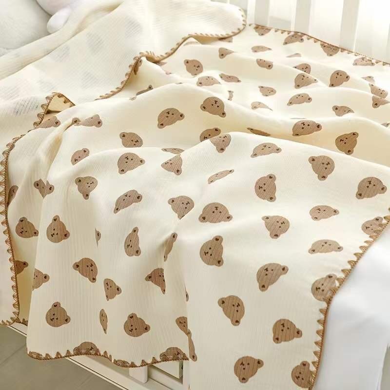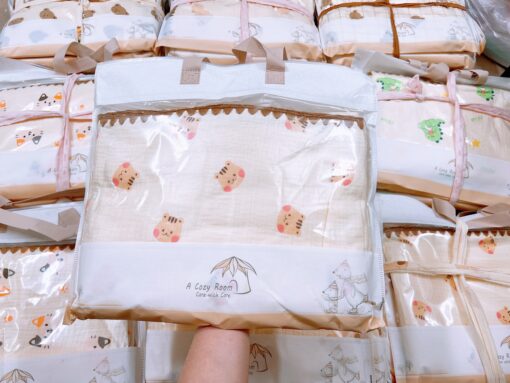 Chất liệu: bề mặt vải xô Muslin Oganic 4 lớp Họa tiết: Gấu, Thỏ; Tim; Cầu Vồng; Mặt Gấu