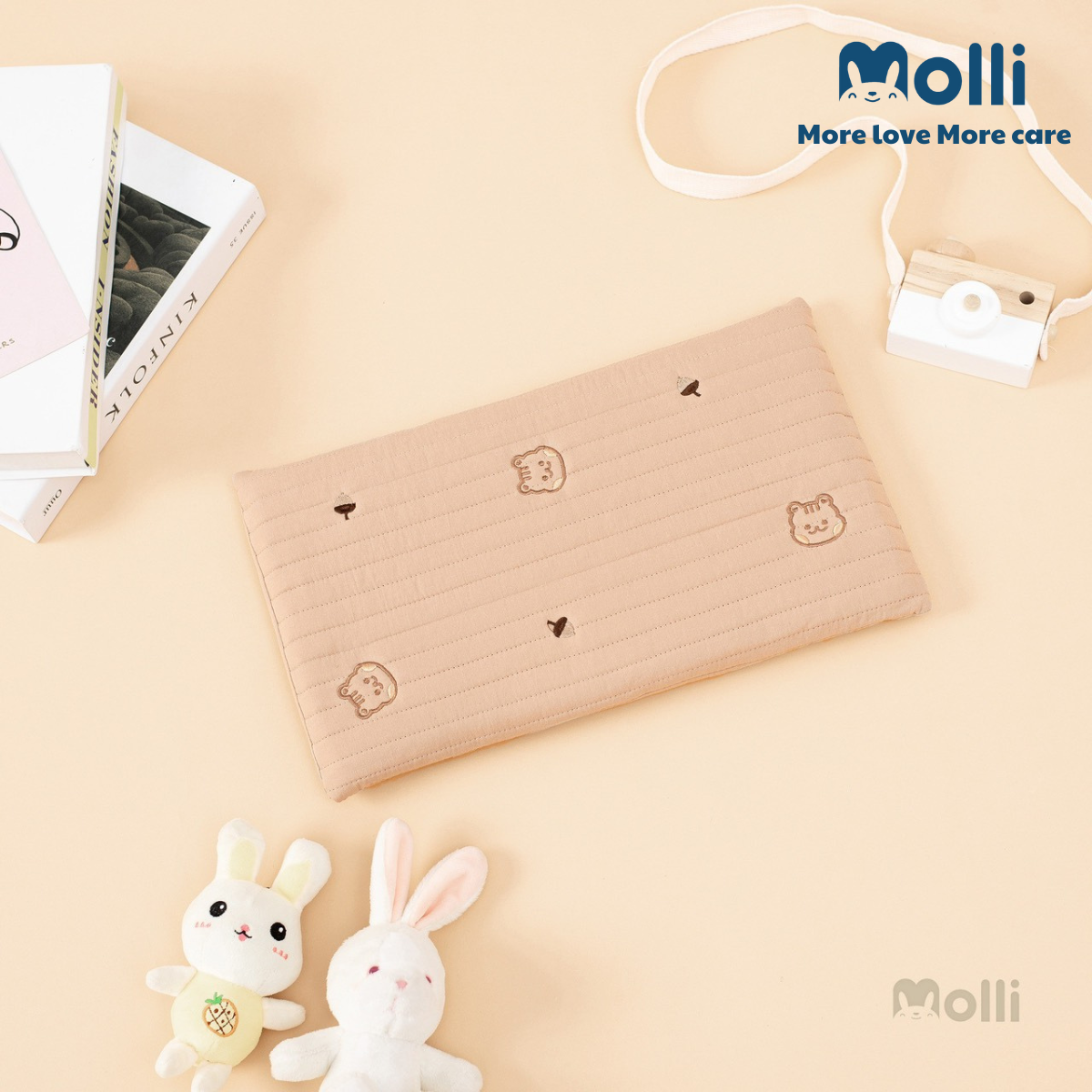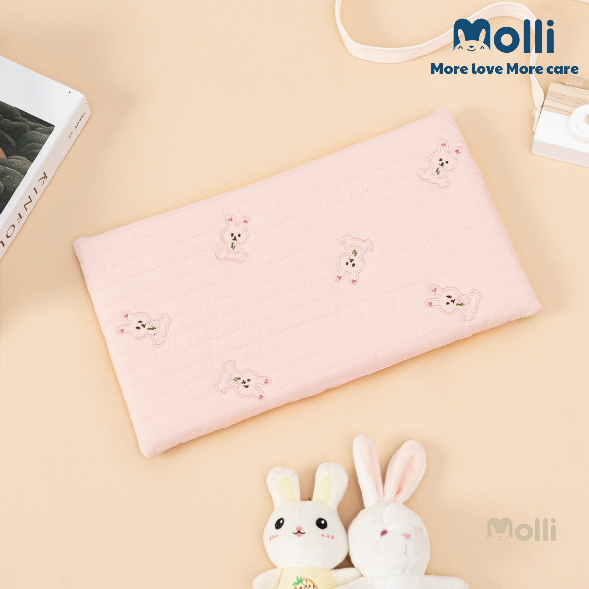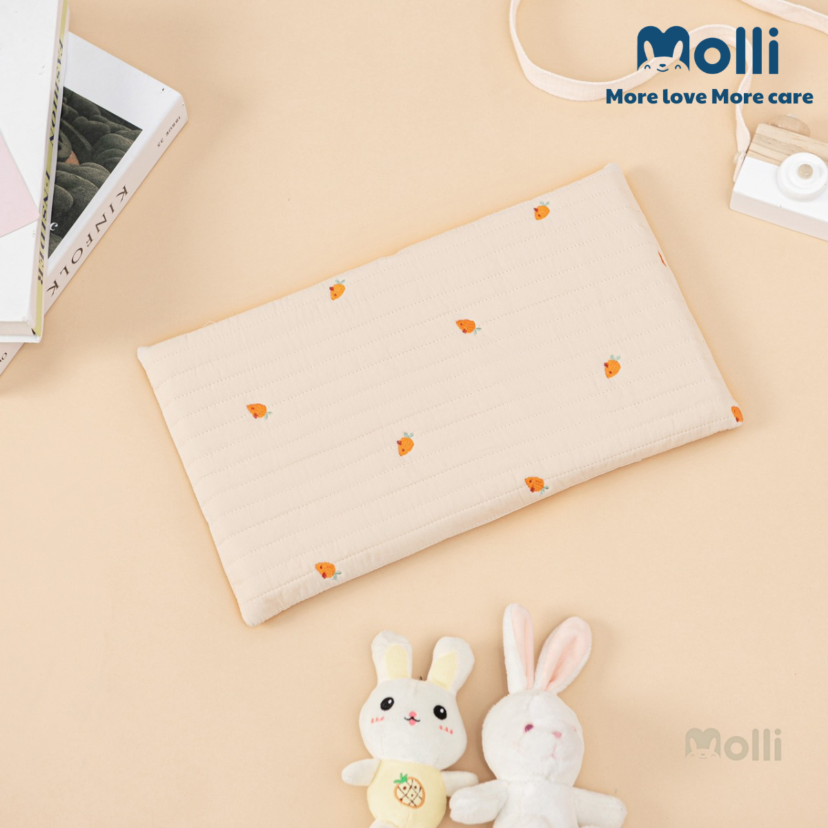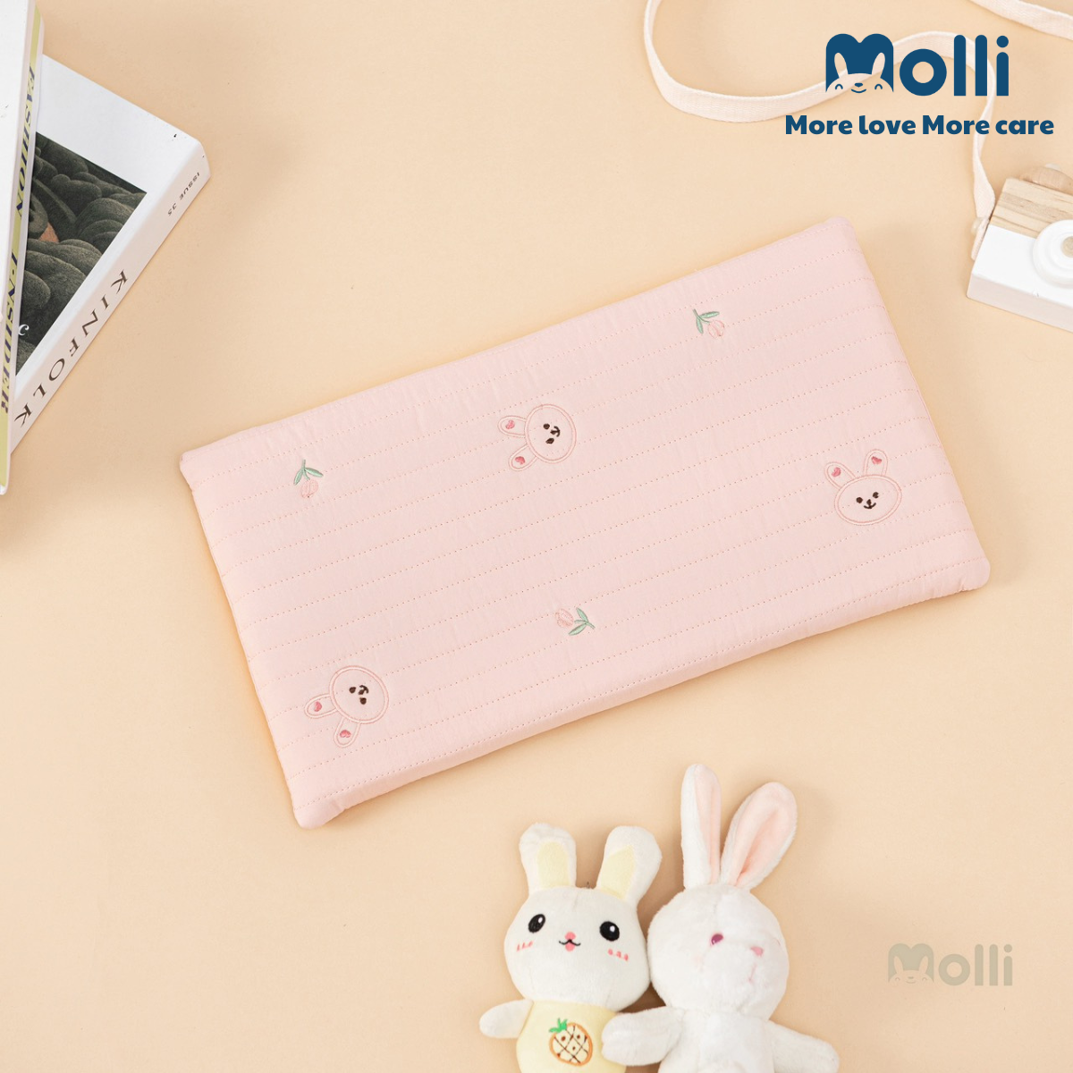 – Vỏ gối được làm 100% bằng vải cotton Hàn trần bông, có rãnh thoáng & bông siêu thấm hút. 100% bông đã được kháng khuẩn an toàn cho da của bé