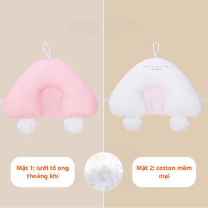 – Gối ngủ định hình chống bẹp đầu thiết kế sử dụng được cả 2 mặt ( mặt trước & mặt sau) mặt trước chất liệu 100% cotton mềm mại an toàn cho da bé, mặt sau chất liệu lưới thoáng khí mềm, mát nằm mùa hè rất tiện lợi