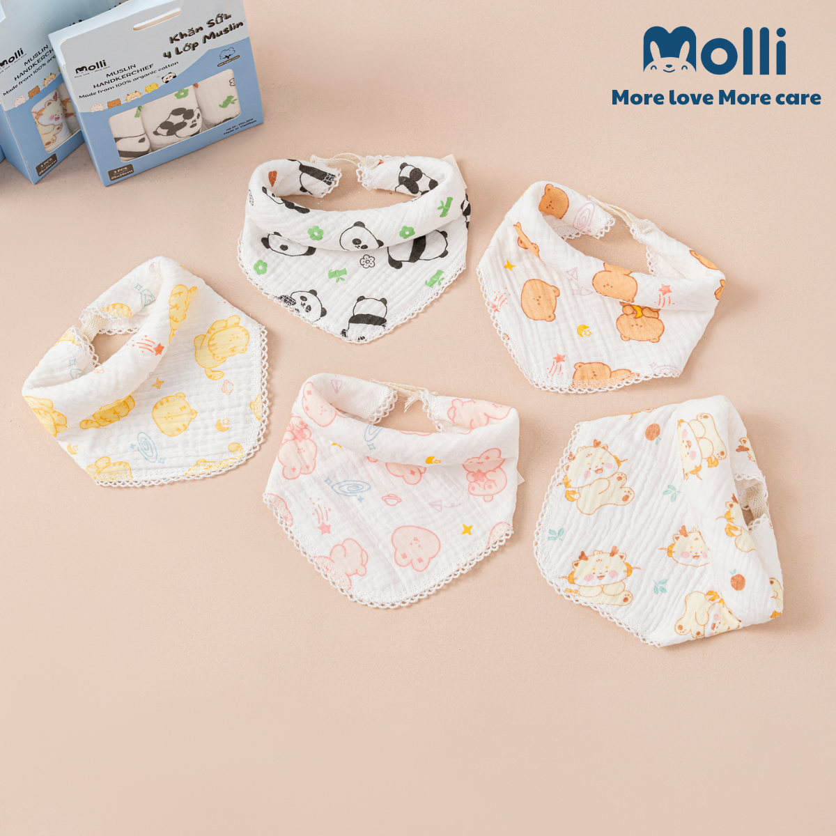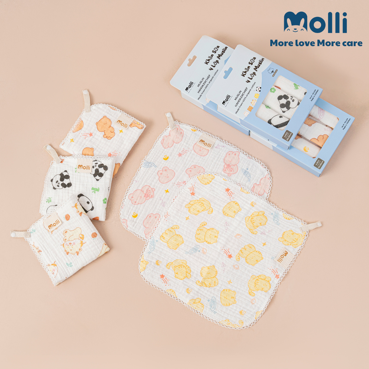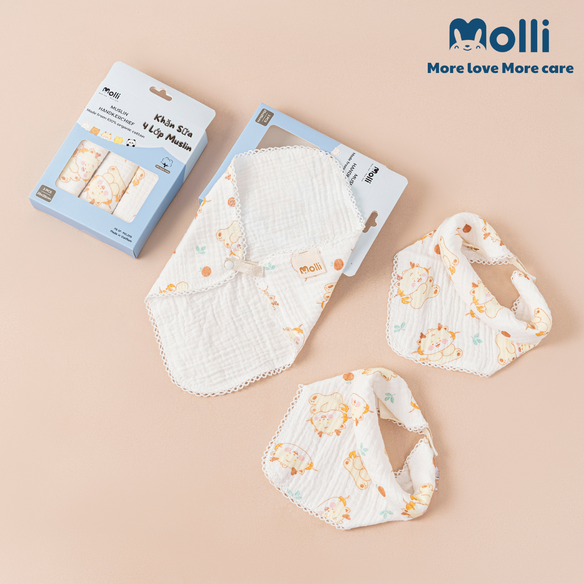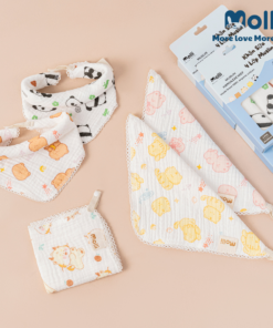– Được làm từ sợi bông muslin mềm mại, không gây trầy xước da bé