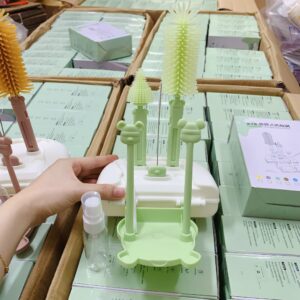 Cọ bình sữa cho bé đầu chải silicon có thể gấp gọn kèm hộp đựng hình gấu dễ thương và giá úp bình tiện lợi