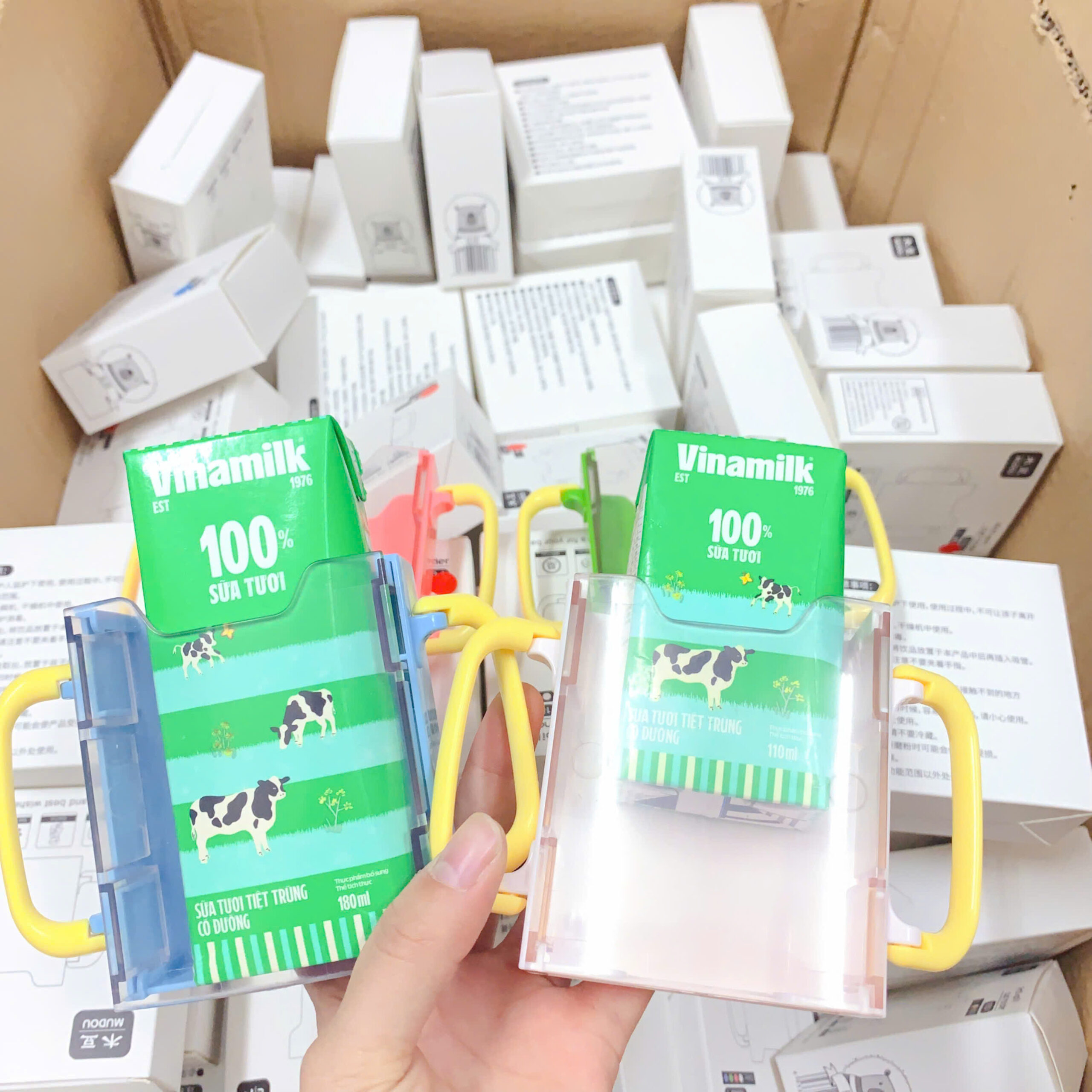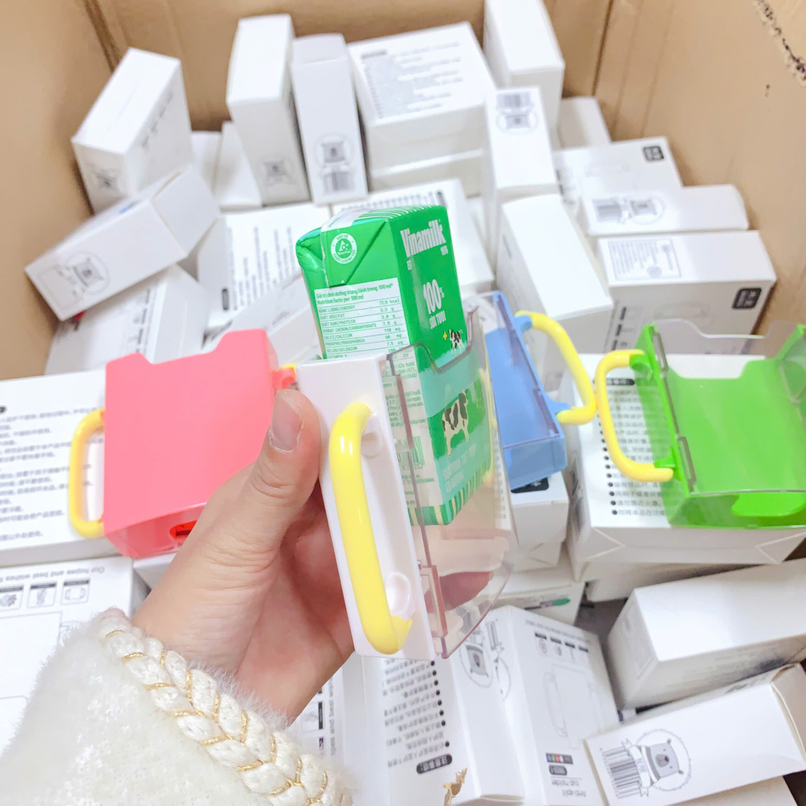 ➖ Hộp đựng sữa hộp giúp các bé chưa kiểm soát được lực bàn tay có thể tự cầm hộp sữa tươi uống dễ dàng, tránh làm sữa trào ra ngoài.