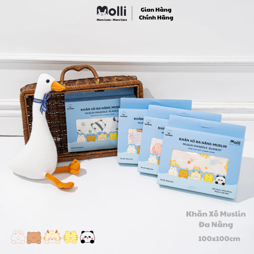 – Khăn xô muslin Molli mang lại cảm giác mềm mịn, thoải mái, dịu nhẹ với làn da bé, đặc biệt là các bé sơ sinh , nhiều công năng trong một sản phẩm
