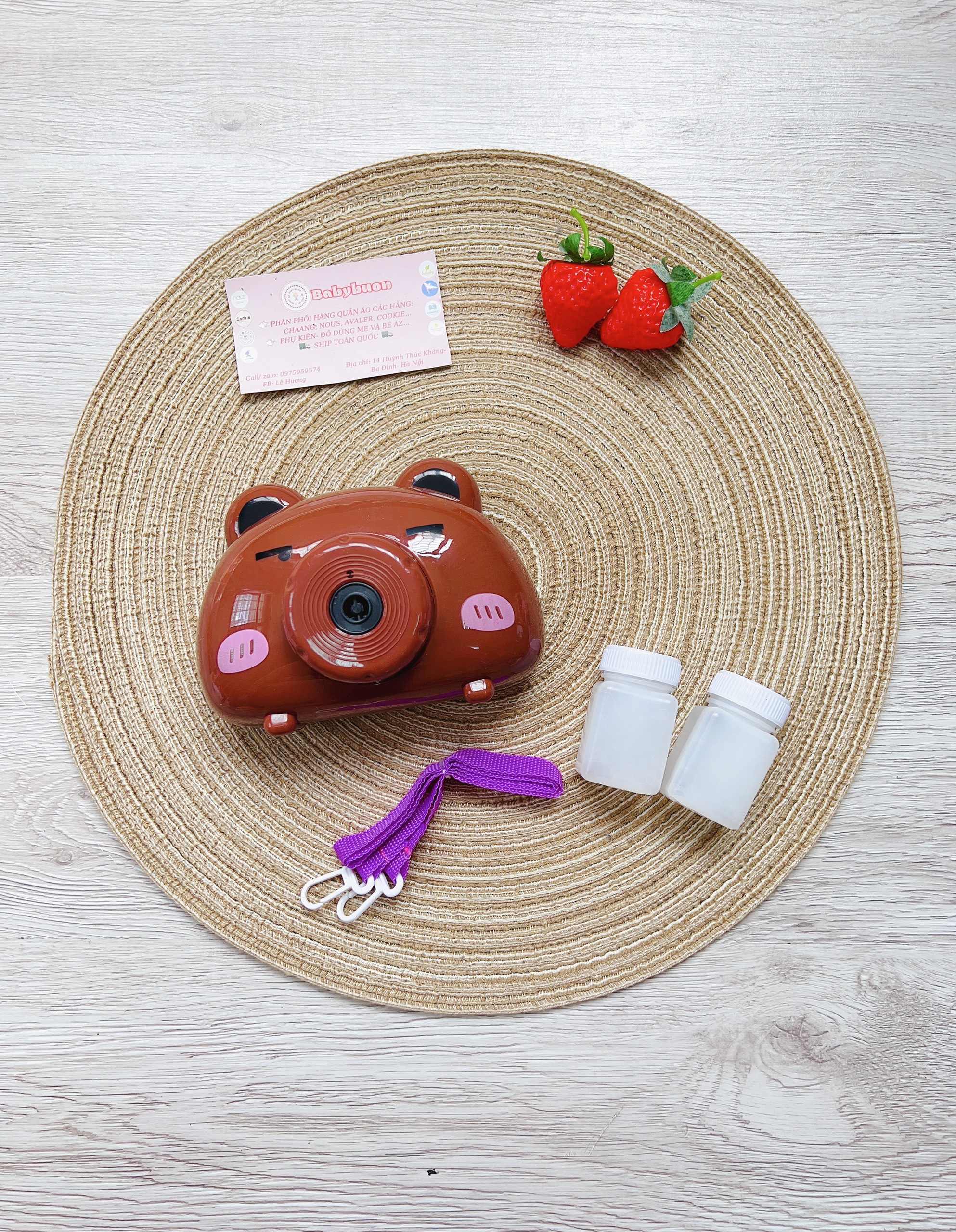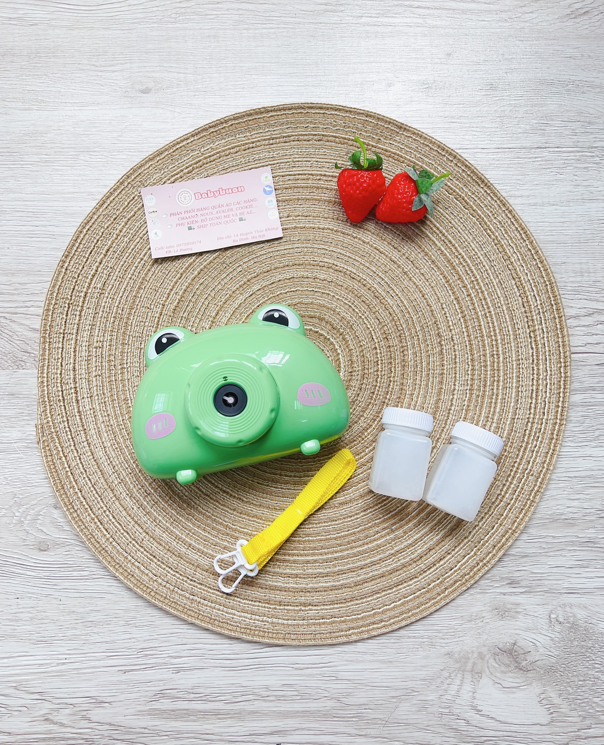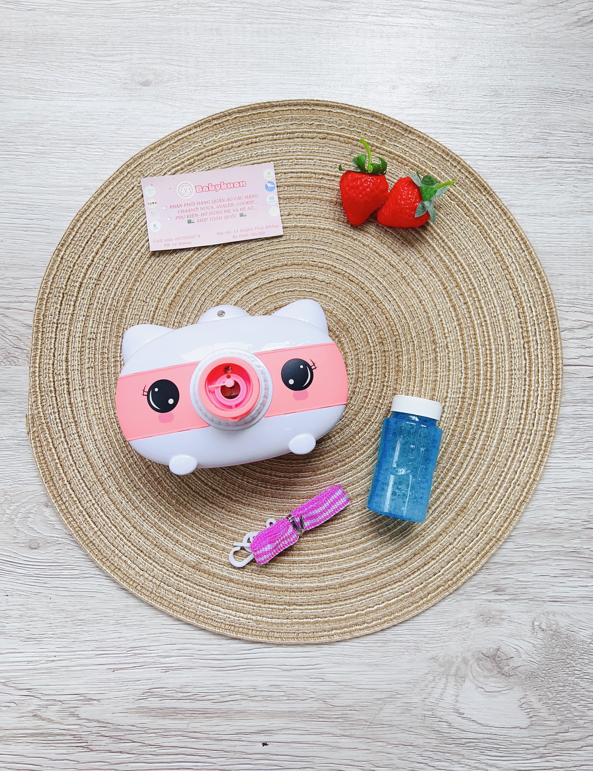 – Máy phun bong bóng xà phòng mô phỏng theo chiếc máy ảnh, hoạt động chỉ với 1 nút bấm, không làm vấy bẩn xà phòng như các loại đồ chơi tạo bong bóng thông thường