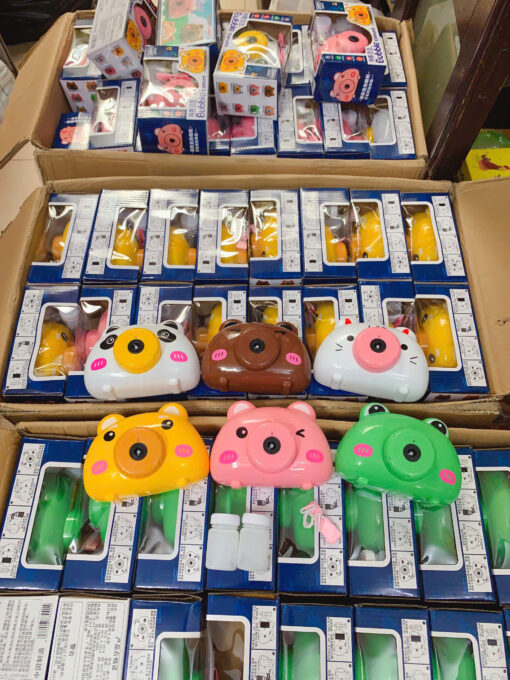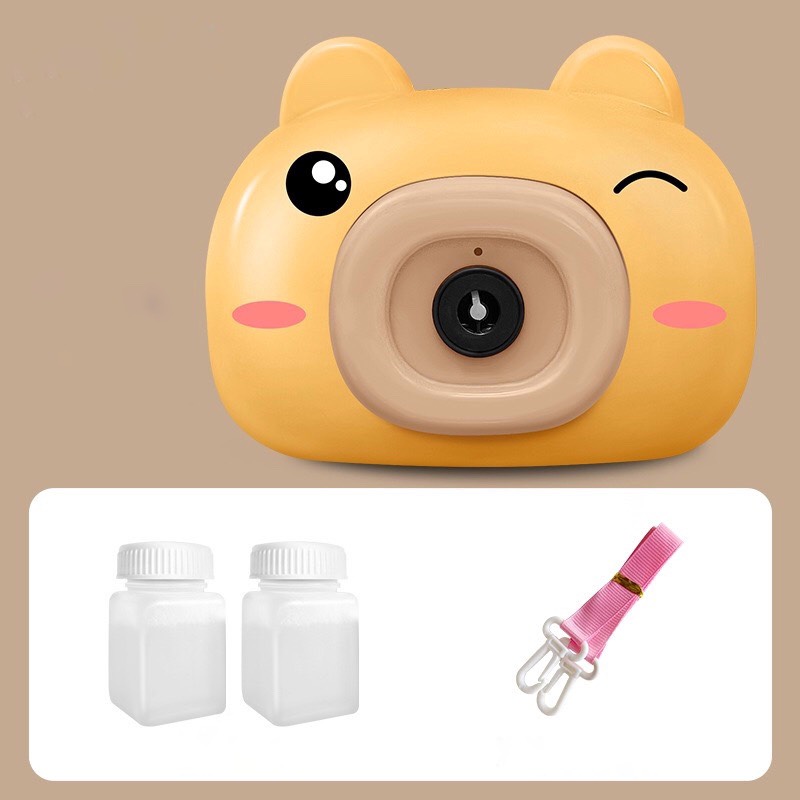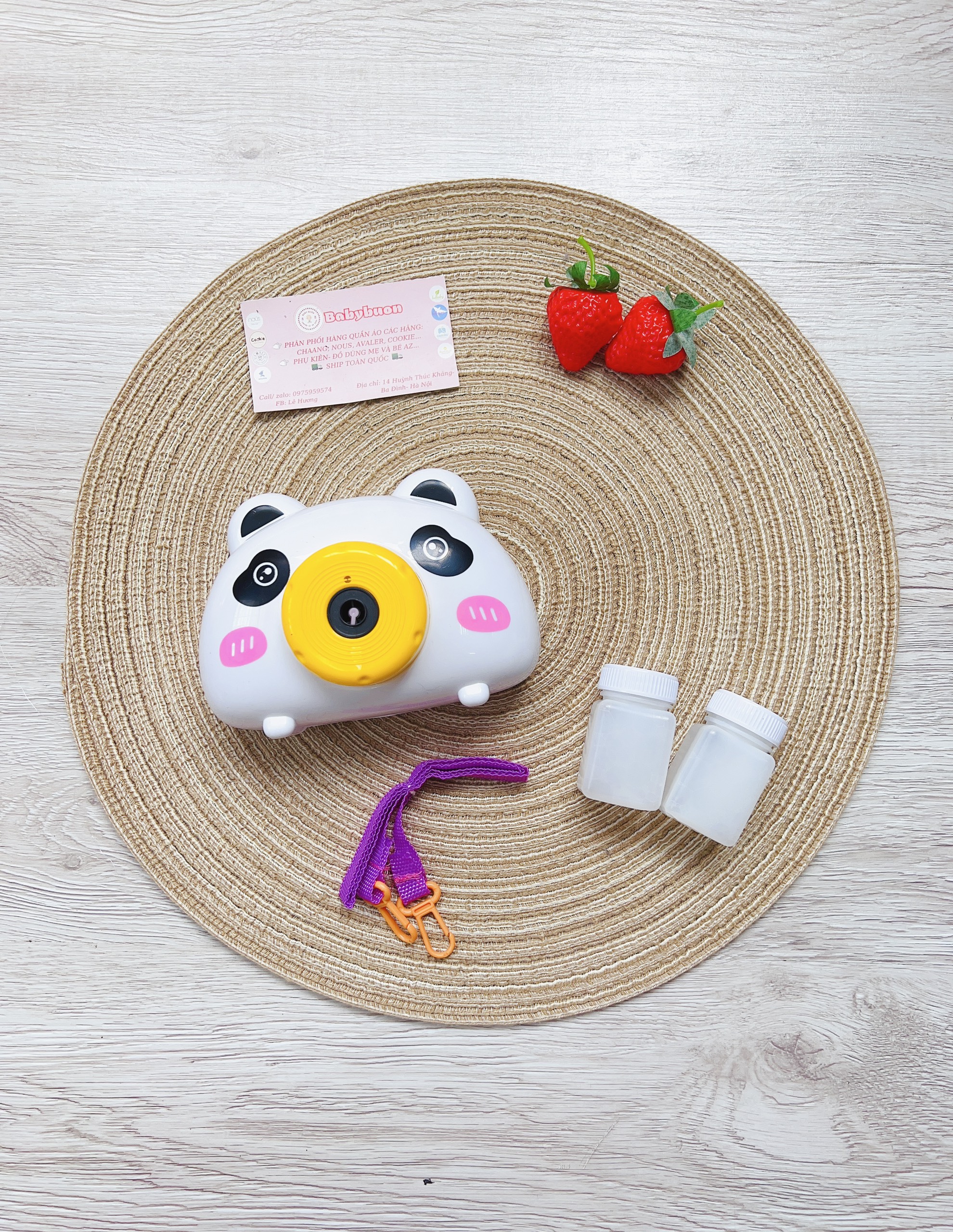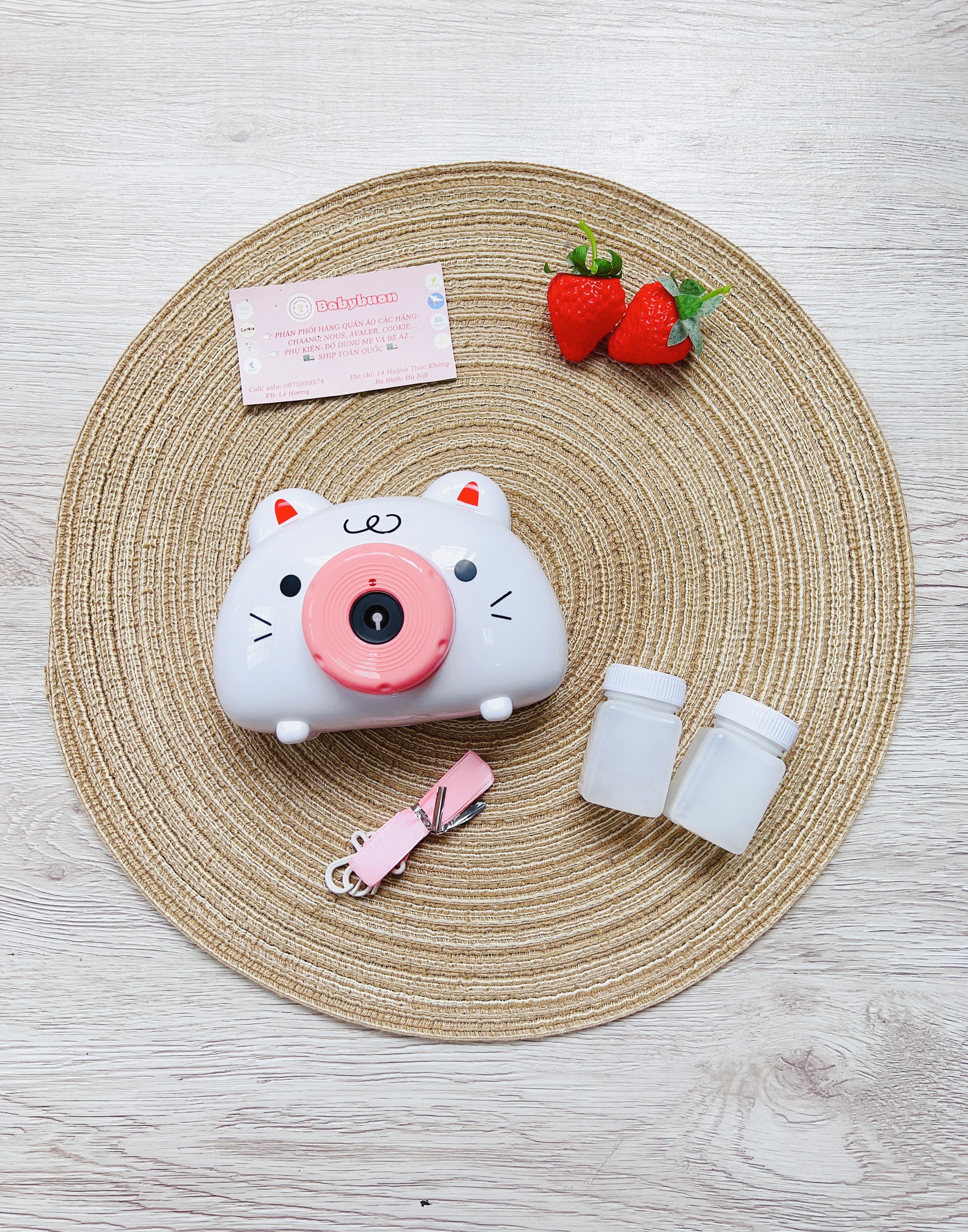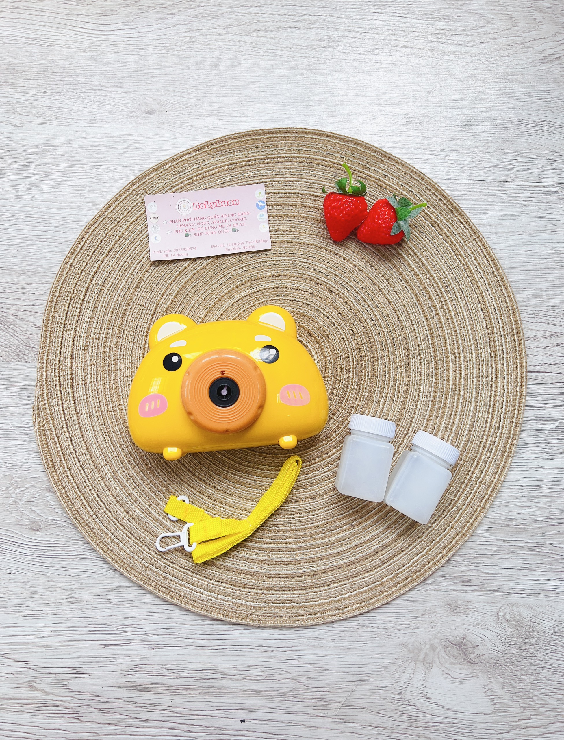 – Máy phun bong bóng xà phòng mô phỏng theo chiếc máy ảnh, hoạt động chỉ với 1 nút bấm, không làm vấy bẩn xà phòng như các loại đồ chơi tạo bong bóng thông thường
