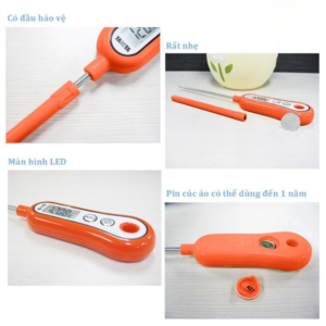 -Để đo nhiệt độ sản phẩm đang đun trên bếp quý khách nên dùng bao que cảm biến cắm vào thân que để cầm đo nhiệt độ được chuẩn.Không để que tựa vào thành nồi.
