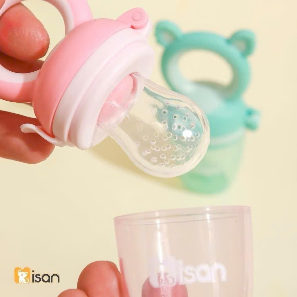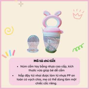 – Núm nhai được làm bằng chất liệu silicon siêu mềm, trên núm là các lỗ nhỏ để bé có thể ăn hoa quả, mút nước từ thức ăn mà không lo bị hóc, bị nôn chớ