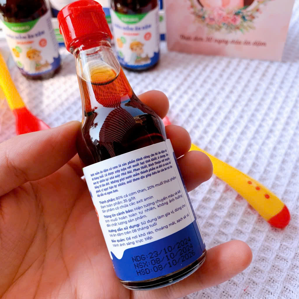 – Ngoài sữa bột, váng sữa, bột ăn dặm, thì nước mắm là thực phẩm dinh dưỡng không thể thiếu trong khẩu phần của các con mỗi ngày đấy các mẹ ạ. Để món ngon của bé tròn vị hơn và đượm dinh dưỡng trong mỗi khẩu phần ăn thì các mẹ đừng quên nước mắm ăn dặm cho bé yêu. Những năm tháng đầu đời, hệ tiêu hoá của bé vô cùng non nớt vì vậy mẹ nên chọn loại nước mắm phù hợp với khẩu vị và chiếc bụng khó tính của con mẹ nhé !