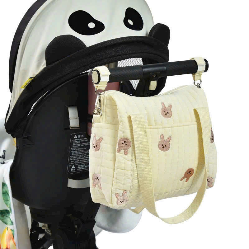 Túi bỉm sữa có kích thước vừa đủ, không quá to cũng không quá nhỏ, giúp mẹ đem theo vừa đủ đồ dùng cho bé mà không bị lỉnh kỉnh, cồng kềnh. Có thể đựng tả bé, sữa bột, bình pha nước, cốc, khăn giấy, quần áo…thoải mái. Lớp vải dày dặn vừa đủ để hỗ trợ giữ nhiệt khi ba mẹ mang theo bình sữa pha sẵn của bé. Thêu hoa văn dệt dạng chéo siêu xinh, siêu nét Có độ nặng vừa phải để treo trên xe đẩy, thích hợp gắn xe đẩy sơ sinh.