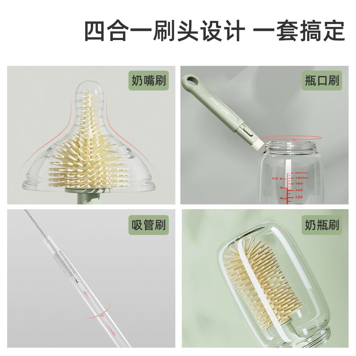– Bộ Cọ Bình Sữa 6 Chi Tiết Cho Bé Silicon có 4 màu cho mẹ lựa chọn: Xám, Hồng, Xanh Lá, Cam.