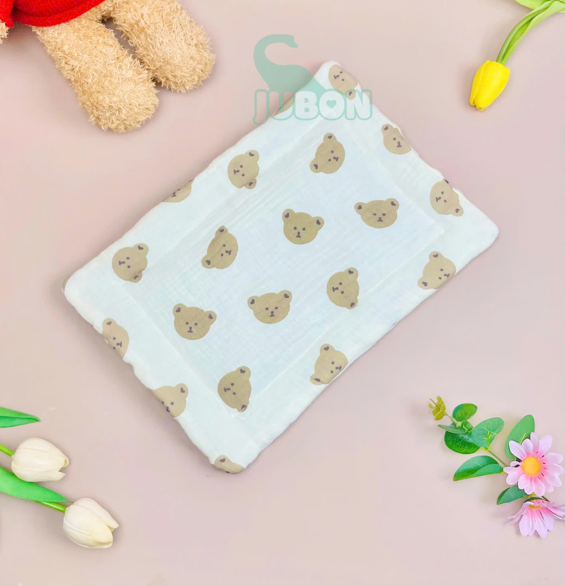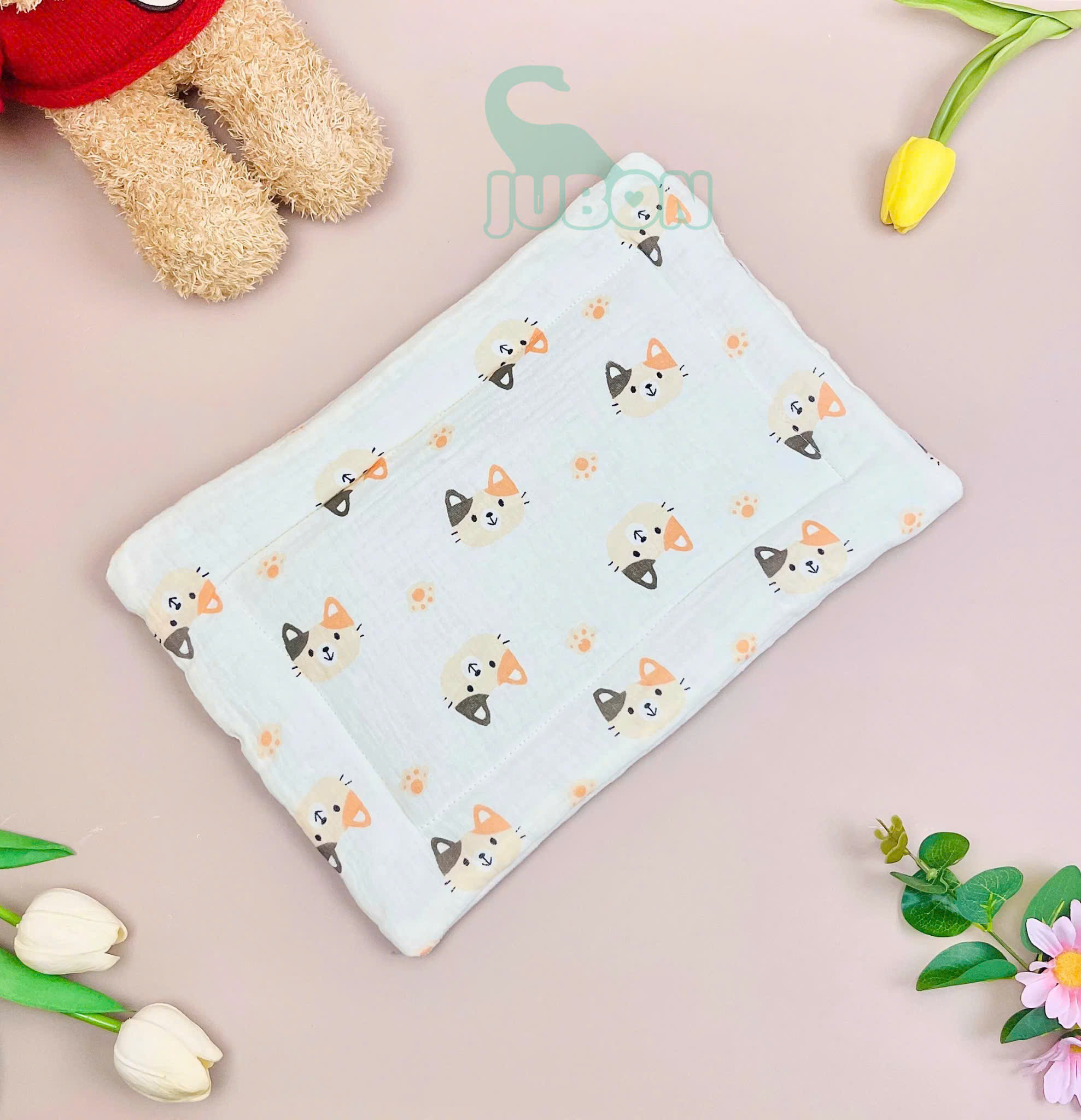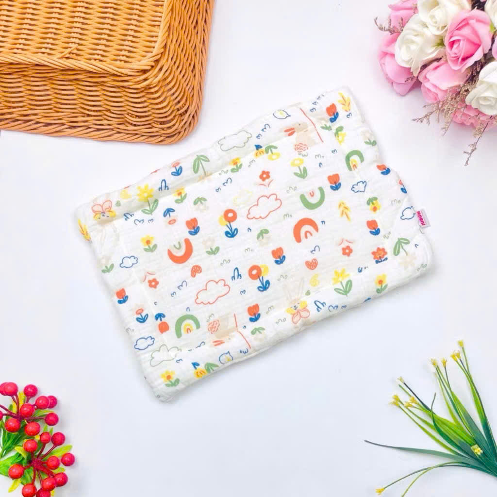 – Được làm bằng chất liệu vải muslin mềm mại, trần bông cho bé, chiếc gối này đảm bảo trải nghiệm ngủ thoải mái cho trẻ sơ sinh hoặc trẻ mới biết đi.