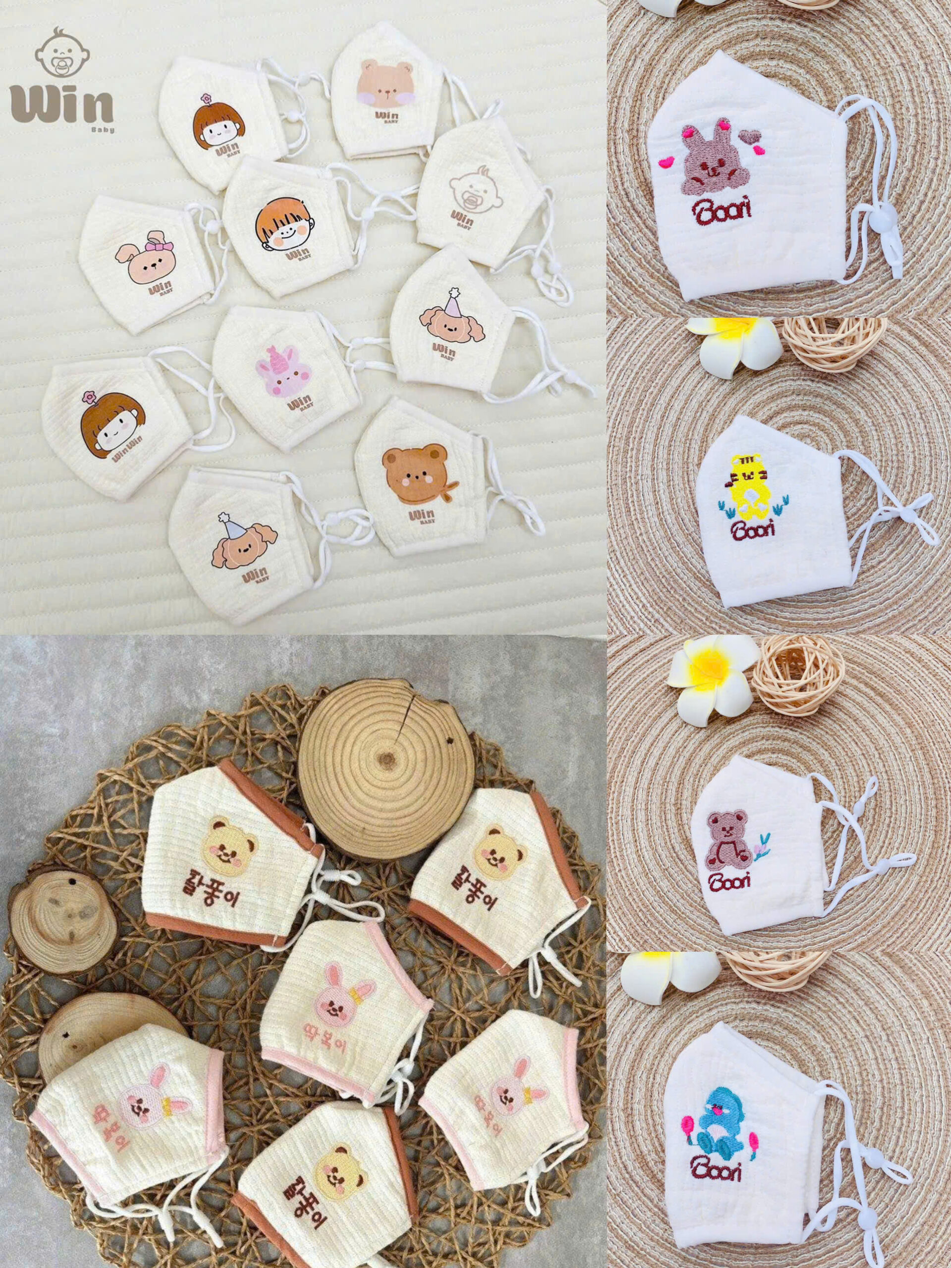 – Khẩu trang xô Muslin Organic 3 lớp Cao cấp, mềm mại và an toàn cho bé 0-3 tuổi