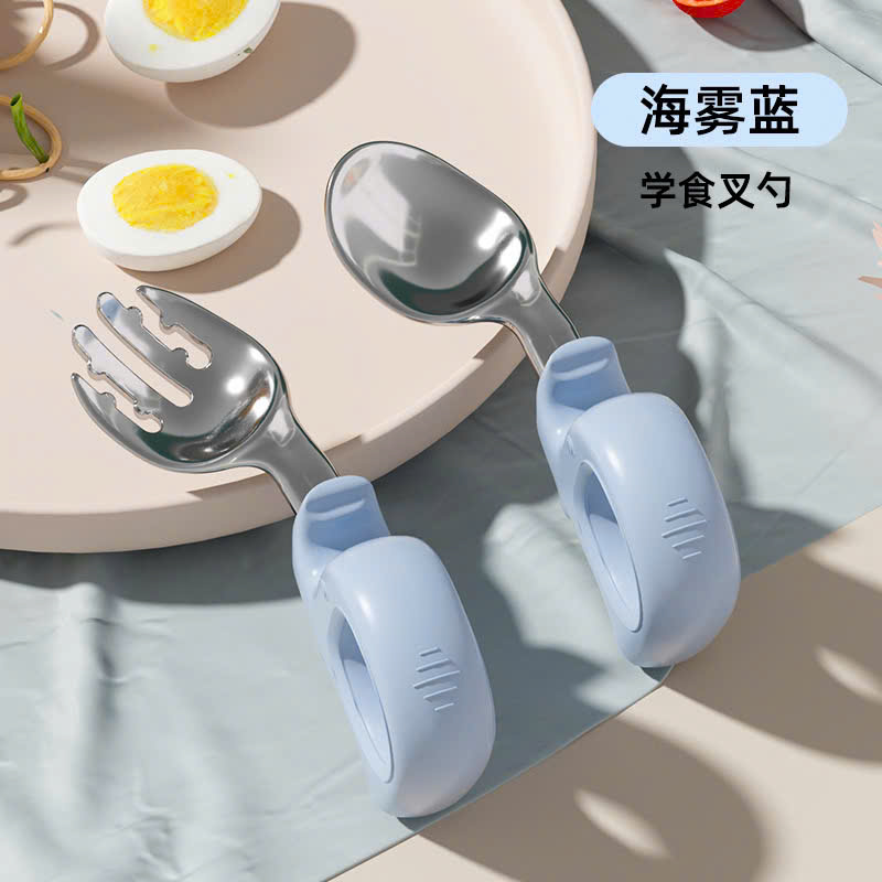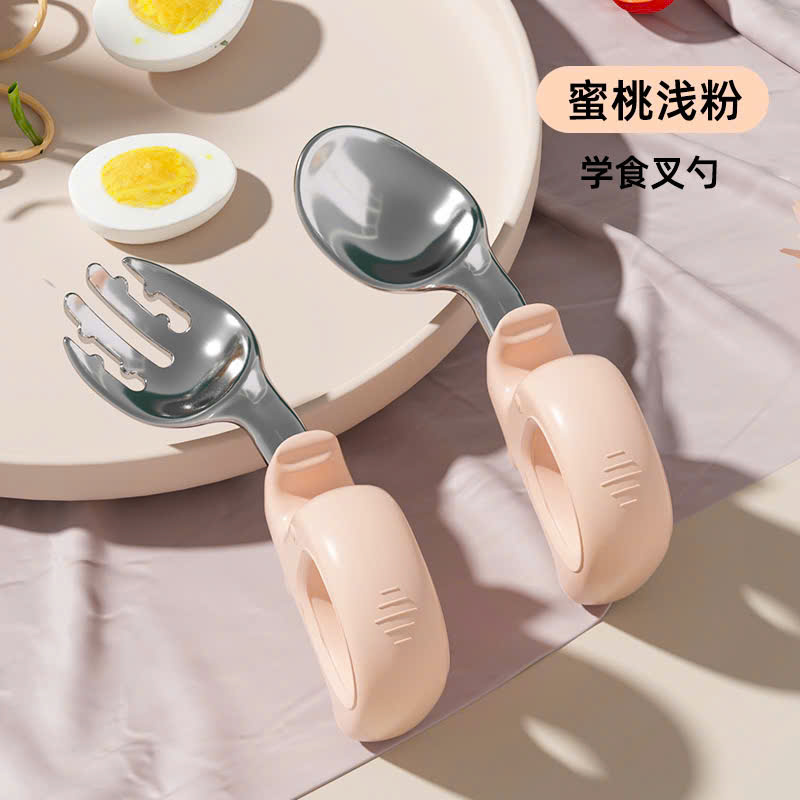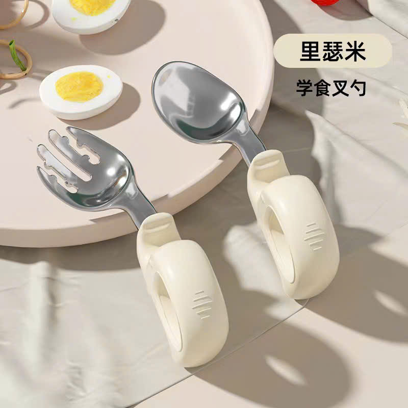 Thìa dĩa tập xúc cho bé chất liệu inox không rỉ màu trơn